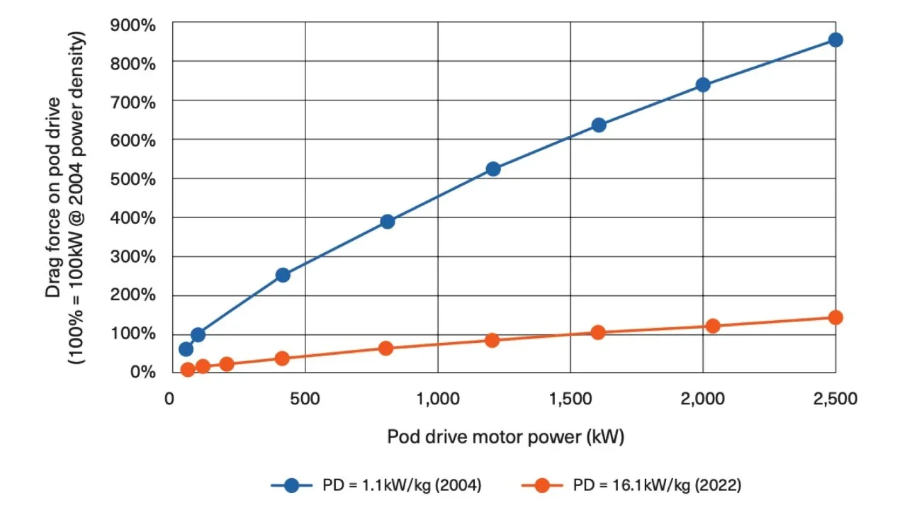 Pero hay una trampa. Las unidades de ABB son del tamaño de una casa pequeña. Para obtener la potencia necesaria para mover un barco propiamente dicho, el motor eléctrico tenía que ser masivo. Cuando metes un motor masivo bajo el agua, crea resistencia. Intenta nadar usando una parka y te harás una idea.