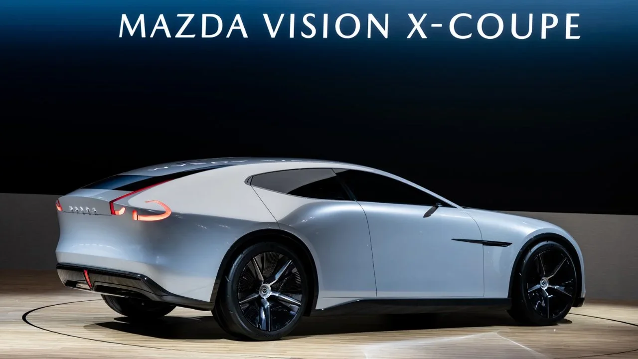 La nave espacial se llama "Vision X-Coupe". El nombre suena como si lo hubiera elegido un niño de 11 años, pero lo mejor es que Mazda lo llama "cupé". Yo, personalmente, no soy un diccionario. Pero soy un hombre con ojos. Y mis ojos ven cuatro puertas. Cuatro. Esto es un sedán. O un "cupé de cuatro puertas". Espera, ¿no era el RX-8 un cupé de cuatro puertas? Mazda, qué traviesos...