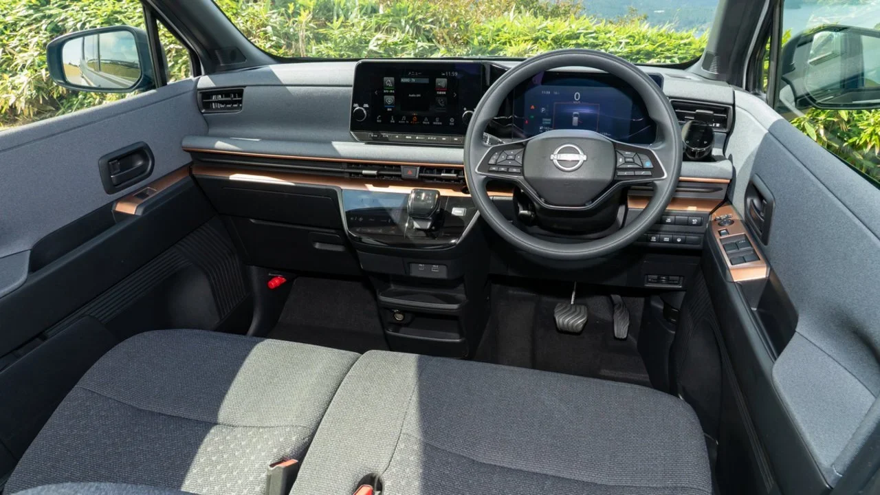 Ahora, la batería. El Sakura está equipado con una batería de 20 kWh, lo suficientemente compacta como para ofrecer un interior sorprendentemente espacioso. Nissan afirma que te dará hasta 112 millas (unos 180 km) con una carga. Eso es más que suficiente para los viajes a la escuela y al supermercado de toda una semana. También tiene el e-Pedal de Nissan, que es fantástico. Básicamente conduces solo con el acelerador: levantas el pie y el auto reduce la velocidad suavemente y recarga la batería. Es brillante en el tráfico de la ciudad.