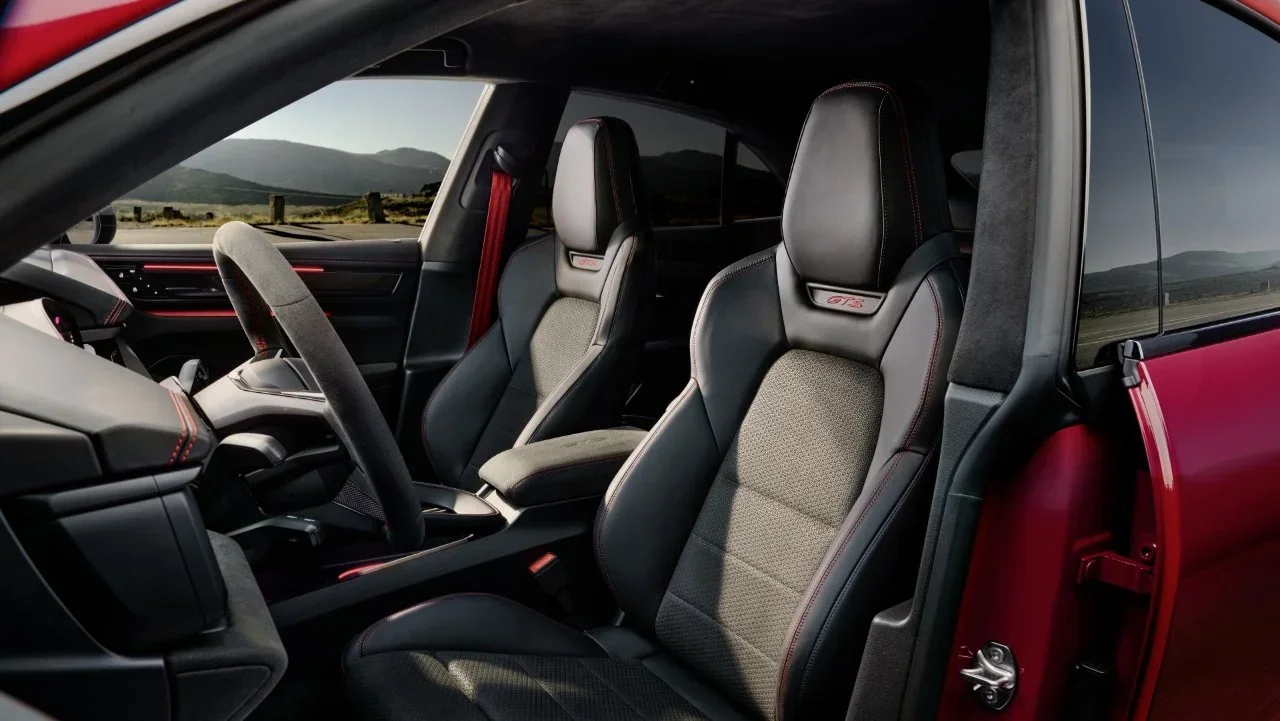 Por dentro, el tema es... ¡más negro! El cuero negro une fuerzas con el "Race-Tex", que es el nombre de Porsche para ese material adherente similar al ante que te hace sentir como un piloto de carreras. Tienes magníficos asientos deportivos adaptables de 18 posiciones para mantenerte en tu sitio, y los logotipos de GTS están elegantemente (o no, según tu opinión) bordados en los reposacabezas y plasmados en los gráficos de la cabina digital, solo en caso de que olvidaras qué SUV eléctrico de $100,000 dólares estabas conduciendo.