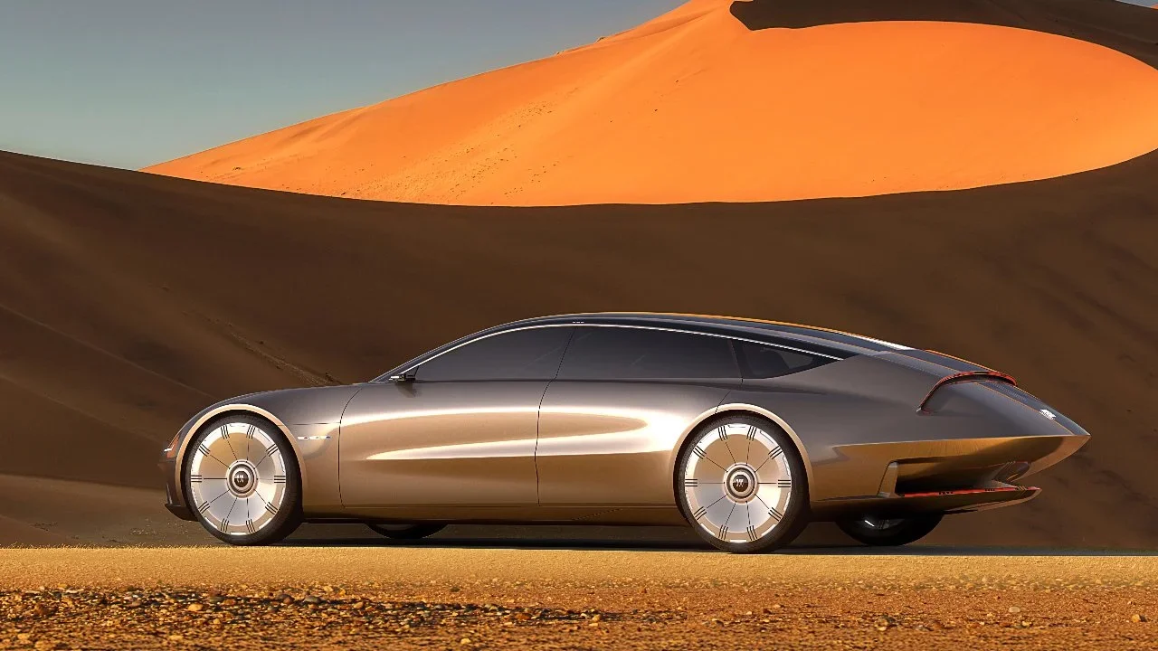 Y la cosa se pone mejor, y la parte que realmente me vuela la cabeza es algo que nunca esperé ver. Esta pieza de genialidad retrofuturista, este glorioso homenaje a la carrera espacial de la década de 1950, no se cocinó en un búnker secreto bajo Detroit. No. Fue concebido, diseñado y desarrollado por el Centro de Diseño Avanzado de GM China. Oh, sí. El concepto de Buick más emocionante y vanguardista en una generación ha venido del Reino Medio. Parece que mientras todos estábamos ocupados viendo fútbol y discutiendo sobre si la piña va en la pizza, la división china de Buick estaba ocupada construyendo una nave estelar.