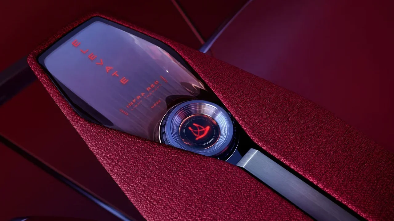 El Elevate Mode (Modo Elevado) es el modo "estoy cansado, maneja tú": el auto se vuelve autónomo. Los pedales y el volante se retraen dentro del tablero para darte más espacio para meditar. La iluminación se vuelve roja para una "terapia de luz infrarroja". Los paneles retroiluminados de las puertas "respiran" contigo. Una luz en la columna de dirección se mueve hacia adelante y hacia atrás para ayudarte a cronometrar tu respiración. Es un gurú de metal de dos toneladas ayudándote a encontrar tu centro.