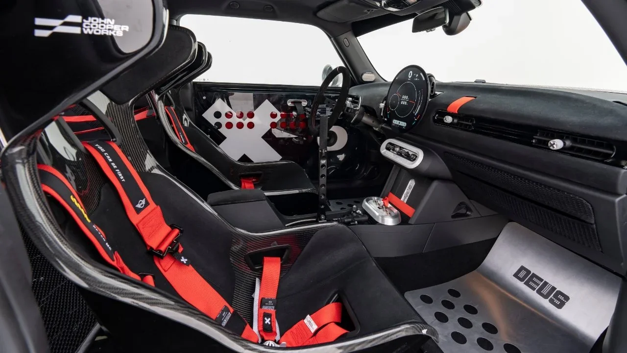 Por supuesto, todo héroe necesita un villano, o al menos un compinche ruidoso y un poco fastidioso. Y el Skeg lo tiene: su gemelo de gasolina, el 'Machina'. Basado en el MINI JCW de gasolina de 231 caballos de fuerza, este es el polo opuesto de su sereno hermano eléctrico. Es un homenaje ruidoso y orgulloso a la gloriosa historia de MINI en los rallies, con una pintura en rojo, blanco y negro y suficientes faros adicionales atornillados al capó como para iluminar un país pequeño.