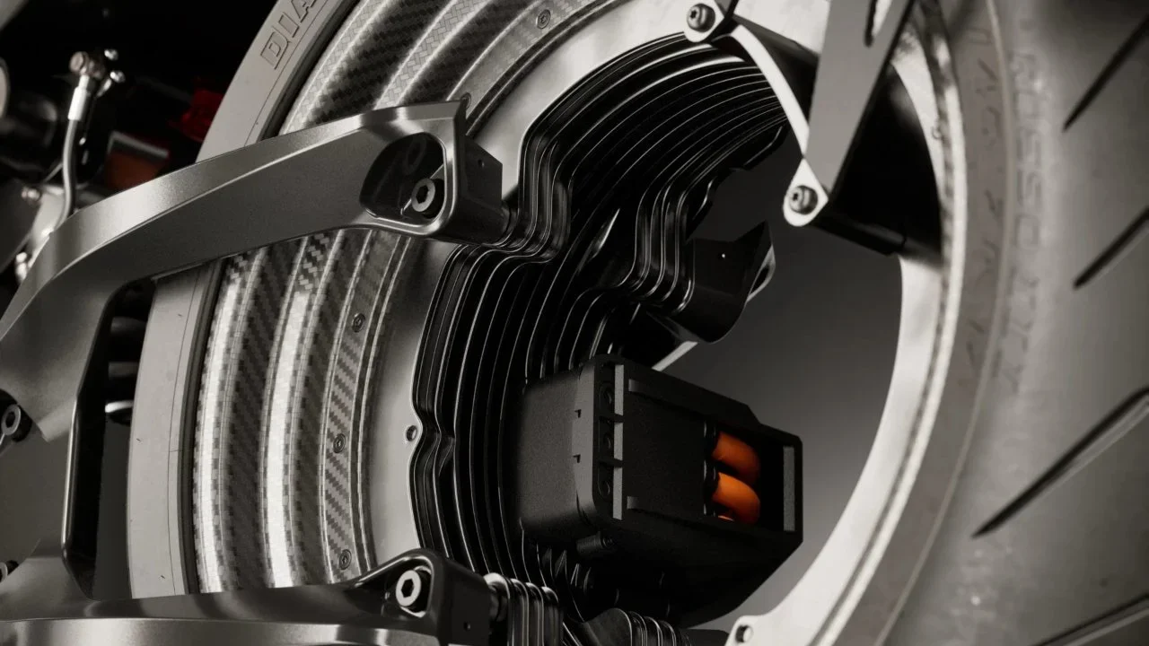 La verdadera estrella de este espectáculo, la razón principal por la que estamos aquí, es lo que llaman el Donut Motor (Motor de Dona). Es una unidad de potencia patentada, sin buje, que parece un portal redondo a otra dimensión. La Donut original era potente, pero aparentemente, también era un poco pesada. Entonces, ¿qué hicieron los ingenieros para esta segunda generación? ¡La pusieron en una dieta de choque! El nuevo motor reduce el 50% de su peso mientras mantiene intactas sus monstruosas cifras de rendimiento.